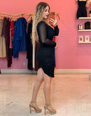 Rhinestones all around, is ruched in the back. Low back